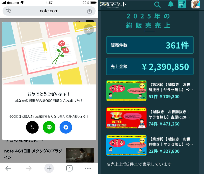 note940部、深夜マーケット360部、累計1300部突破🎉